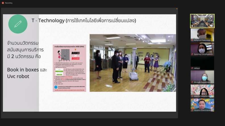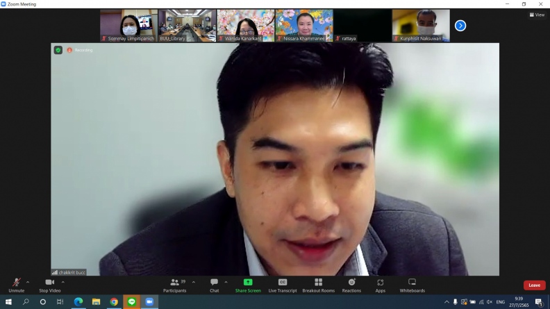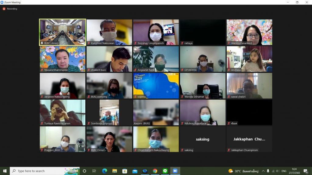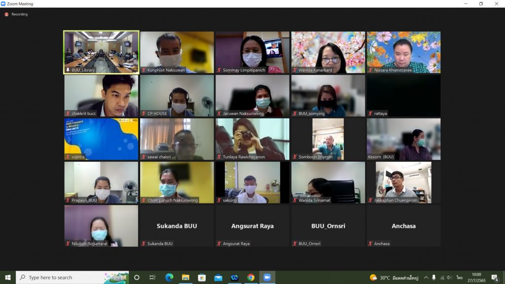 โดยมีอาจารย์เหมรัศมิ์ วชิรหัตถพงศ์ ผู้อำนวยการสำนักหอสมุด พร้อมด้วยผู้บริหารและบุคลากรให้การต้อนรับ และรับการตรวจประเมินการศึกษาภายในฯ ในรูปแบบออนไลน์ผ่านระบบ Zoom Meeting เมื่อวันที่ 27 กรกฎาคม 2565