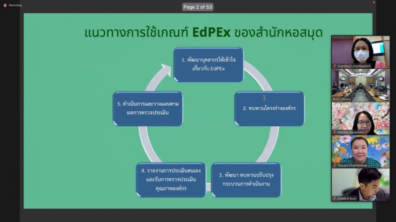 สำนักหอสมุด มหาวิทยาลัยบูรพา ได้รับเกียรติจากคณะกรรมการตรวจประเมินคุณภาพการศึกษาภายใน มหาวิทยาลัยบูรพา ระดับส่วนงาน ตามเกณฑ์ EdPEx ประจำปีการศึกษา 2564 ของสำนักหอสมุด ประกอบด้วย